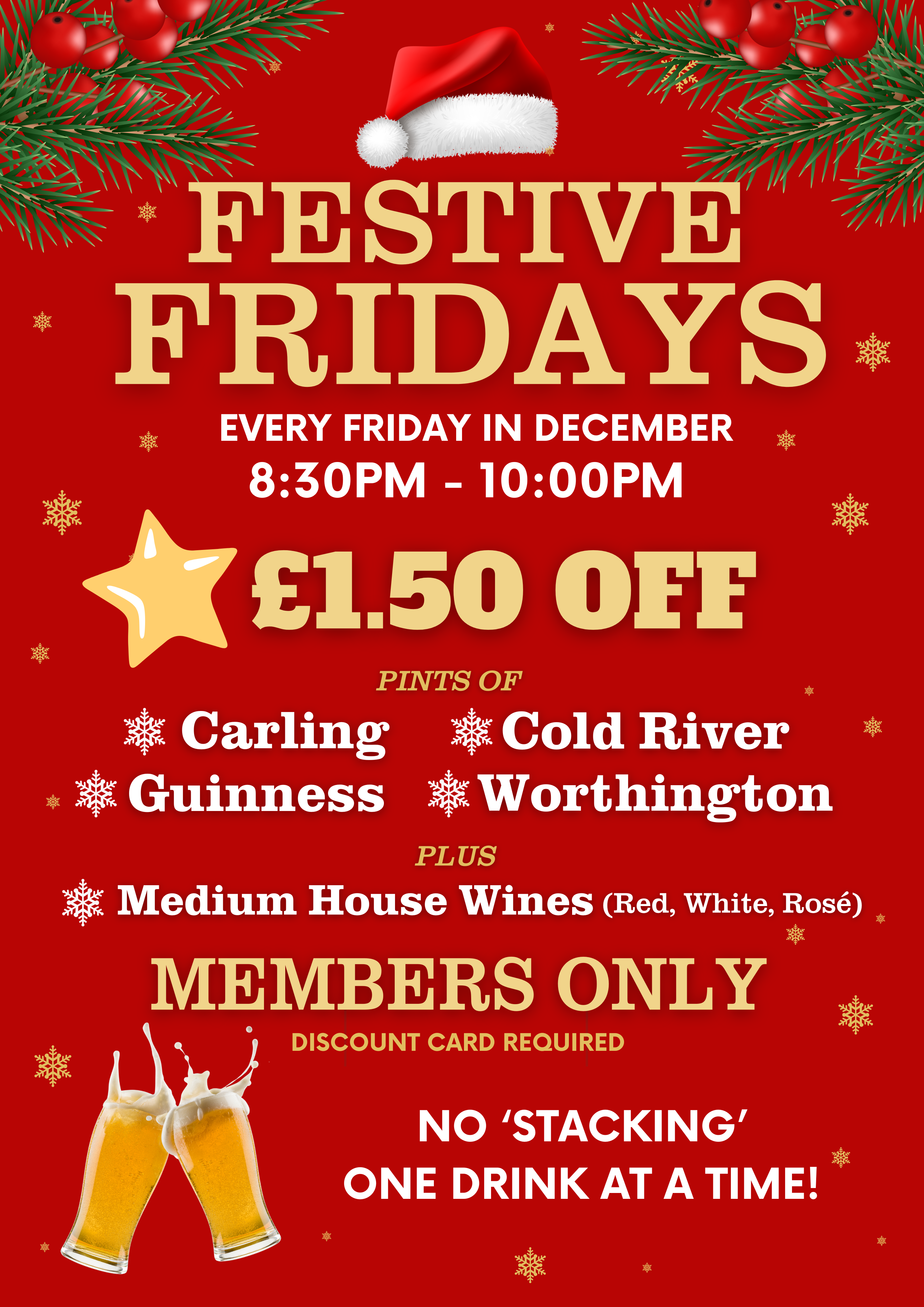 Happy Hours for the three Fridays before Christmas. See here for details ...