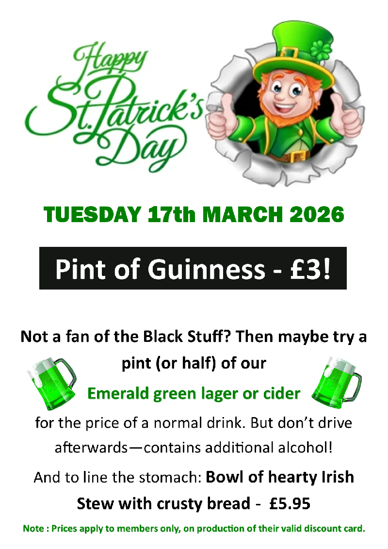 Tickets behind the bar at £1 a strip with LOTS of prizes to be won! Drawn at lunchtime on the Sunday before Easter.